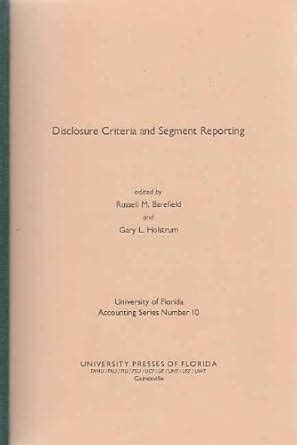 Disclosure Criteria And Segment Reporting By Russell M. PDF textbook refers back to the digitized, interactive functionality of intelligent textbook information shown within a scientific and intuitive visual, audio, graphic, and text by Digital media reading through textbook. Due to the fact the advent of the online world, quite a few everyday functions are transferred to the Internet. The identical goes for Disclosure Criteria And Segment Reporting By Russell M. book.